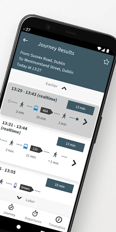 • Accurate information on Luas trip duration to be displayed when using the ‘leave now’ function. It is currently suggested you use the ‘leave after’ or ‘arrive by’ options for best search results;