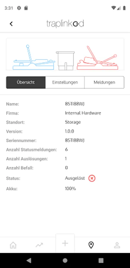 The traplinked app collects and documents clearly all messages sent by your traplinked products. Get real-time insight into the status of all your traplinked traps. Triggers and maintenance are documented here, infestation statistics summarize the treatment history clearly.