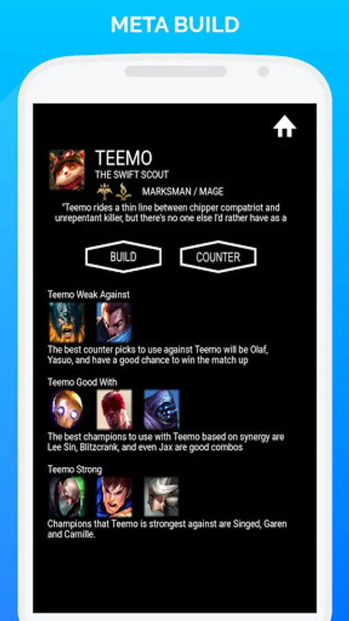 LoL Wild Rift Meta 2021 this app very good to climb ranked or solo ranked because have real time meta update. Use all meta and win every ranked ! all pro player including challenger tier use this meta even you in bronze tier, silver tier, gold tier, platinum tier or emerald tier. guide for wild rift mobile which always update