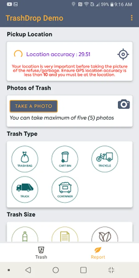 Trash Drop is a tool for reporting refuse/trash in our environment for the authorities to notice and take action on them. Again a user can use this app to request refuse/trash collectors to locate you and collect your refuse.