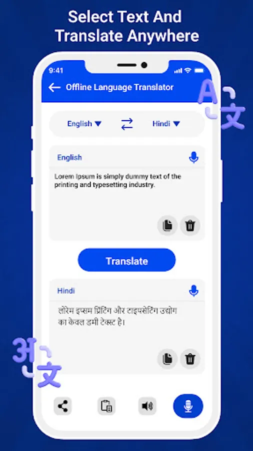 The offline Language Translator app will allow you to search up words and sentences in a dictionary or translate them fast, efficiently, and easily. Best translation app offline also has a speech recognition tool that allows you to quickly enter text and a voice broadcast option that allows you to listen to the translated text. Translation offline is completely free, and you can use it to translate even when you're not connected to the internet.