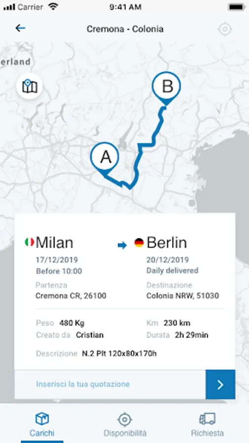 Install Transport Urgent App and start receiving cargo orders. Register for free and select to receive such offers based on availability of your means.