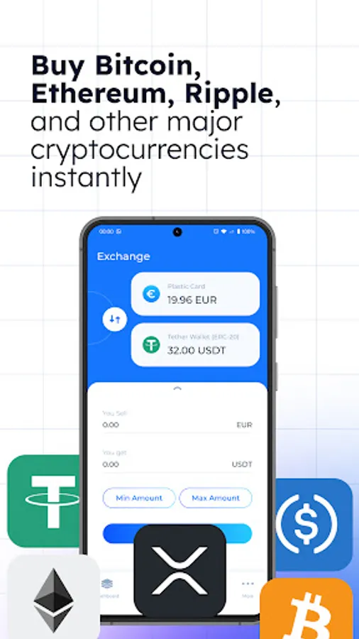 ▪️ Buy & sell BTC (Bitcoin), ETH (Ethereum), LTC (Litecoin), USDT (Tether), USDC (USD Coin), XRP (Ripple) and other popular cryptocurrencies and stablecoins