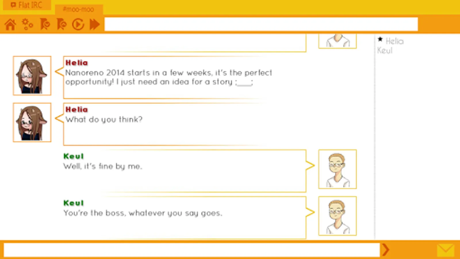 Three weeks before a game jam named Nanoreno, a small visual novel team decides to enter to ensure their survival with a short project. The thing is: creation is not that easy! Join them in their silly quest for inspiration and see for yourself.