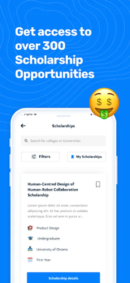 Easy search for schools with displayed admission requirements such as fees, standardized test, scholarship opportunities etc