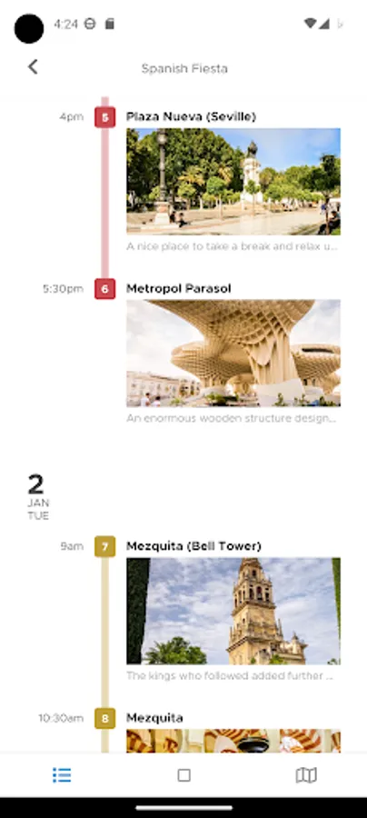 1. A clear day-by-day itinerary view of all the place-activities you have planned for your trip.