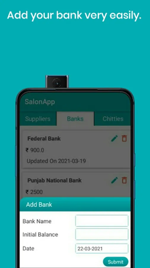SalonApp will help you to manage your daily salon activities such as staff salary management, expense management, purchase management, payment management, purchase returns. It also allows you to track your bank transactions.