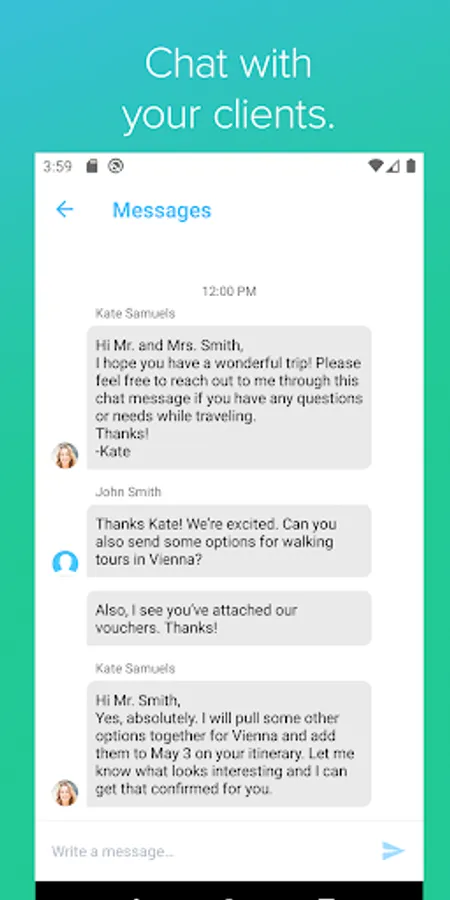 • Quickly send messages to clients (they'll receive them on the Trip Plans app)