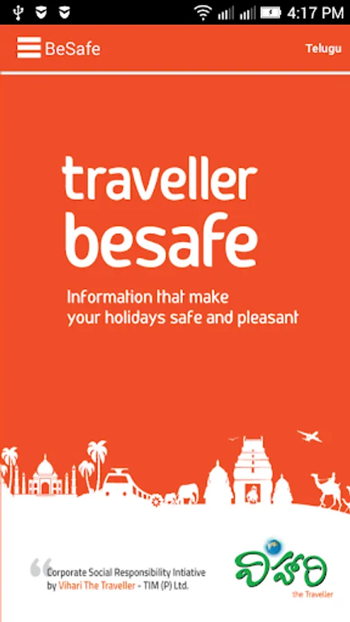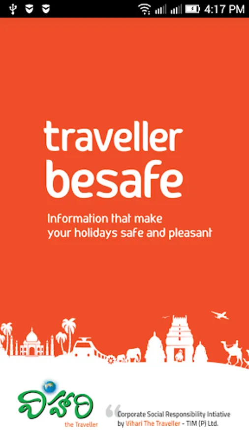 We felt that there is an imperative need for an exclusive book /information about safe tours. In this endeavor we have compiled a book by the name Traveller - Be safe and we have launched the book in July 2014 and distributing the book free of cost and also posting safety tips through, print, television, websites, social media, radio to name a few, to make our endeavor successful have this Mobile APP that can be freely to downloaded and please spread the word of safety. We have also launched travel related safety products on www.travellerbesafe.com.