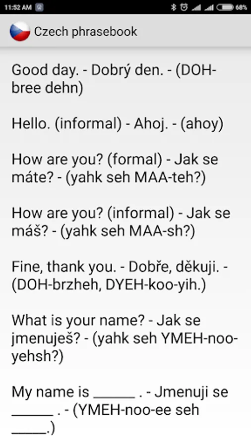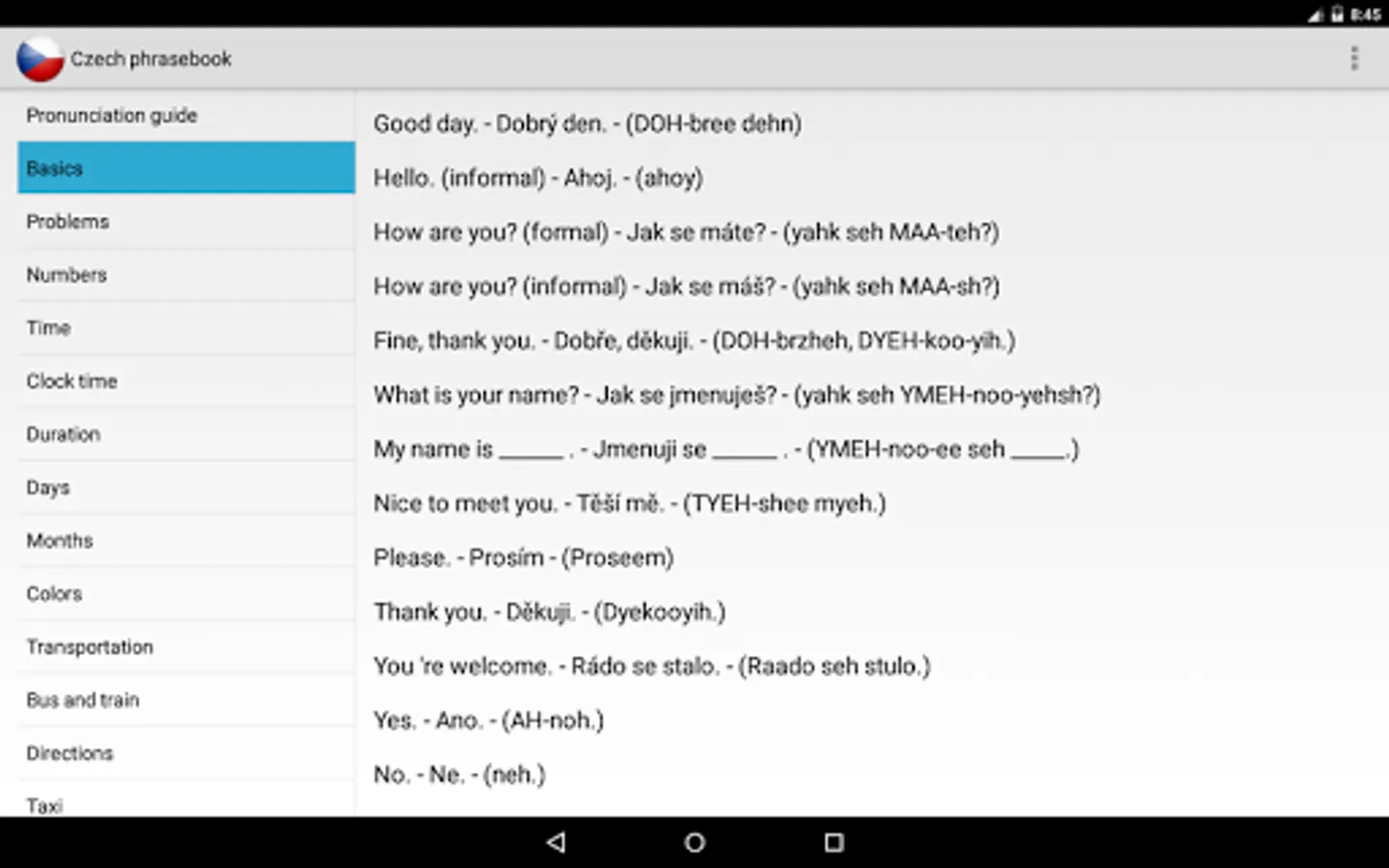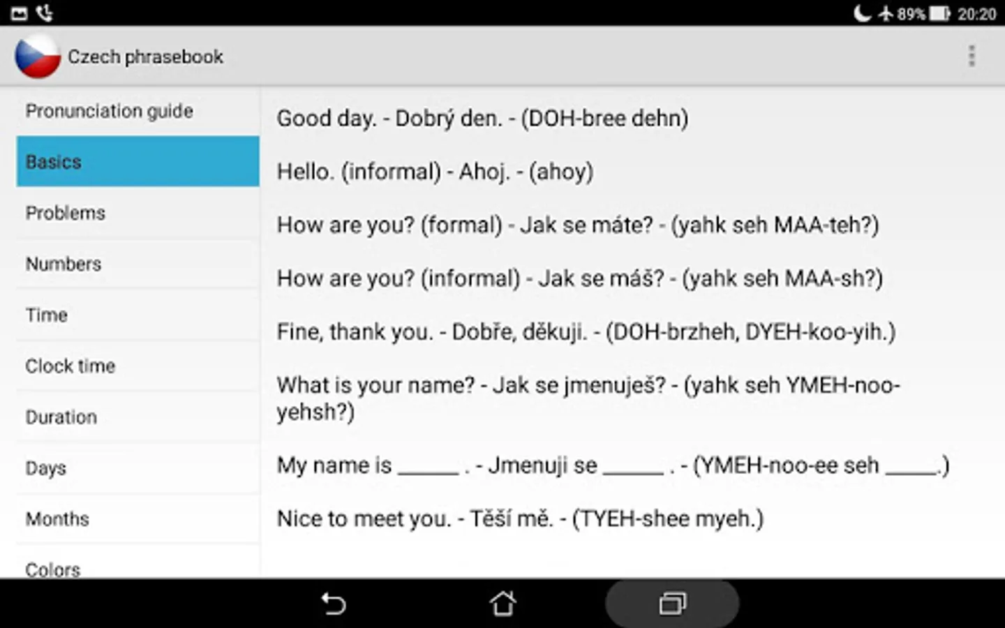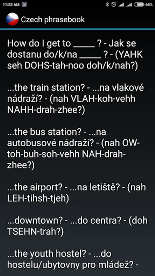 Simple offline Czech phrasebook. Helps speaking tourists to communicate with the local population in the Czech Republic.