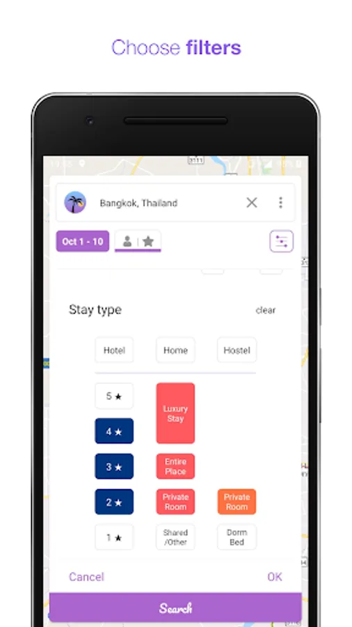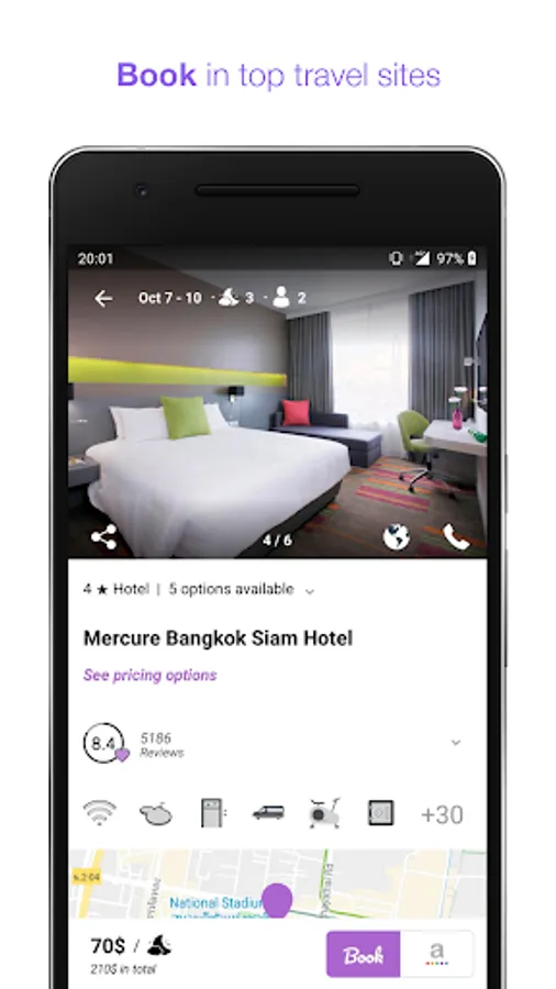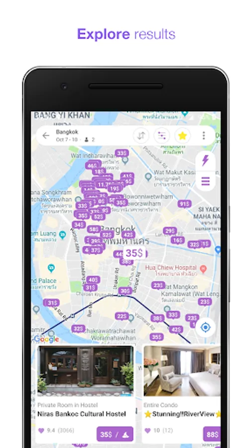 ⭐🏡🛏 The app features all types of stay, comparing prices from top booking sites.