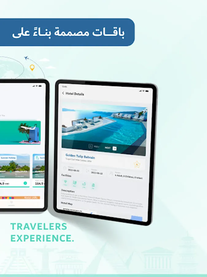 Save your time and effort in searching for cheap airline tickets and comparing the details of hotels, and enjoy holidays, travel offers, and integrated packages including appropriate hotel reservations and timely flights.