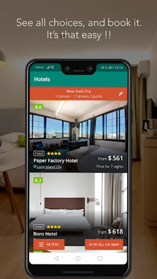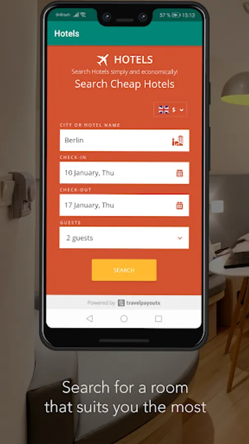 Whenever you want more than just the lowest airfare, you can also find the cheapest hotels and book them within the app. Just enter your desired dates and location and let the app find cheapest hotels so you can get the most for your money. In any city around the globe!