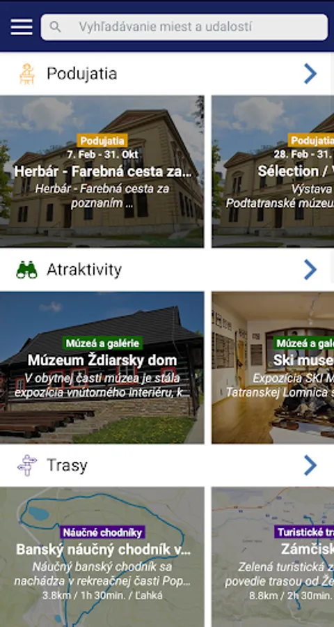 The official Visit Poprad application always offers you an up-to-date list of events, attractions, accommodation, catering facilities and routes.