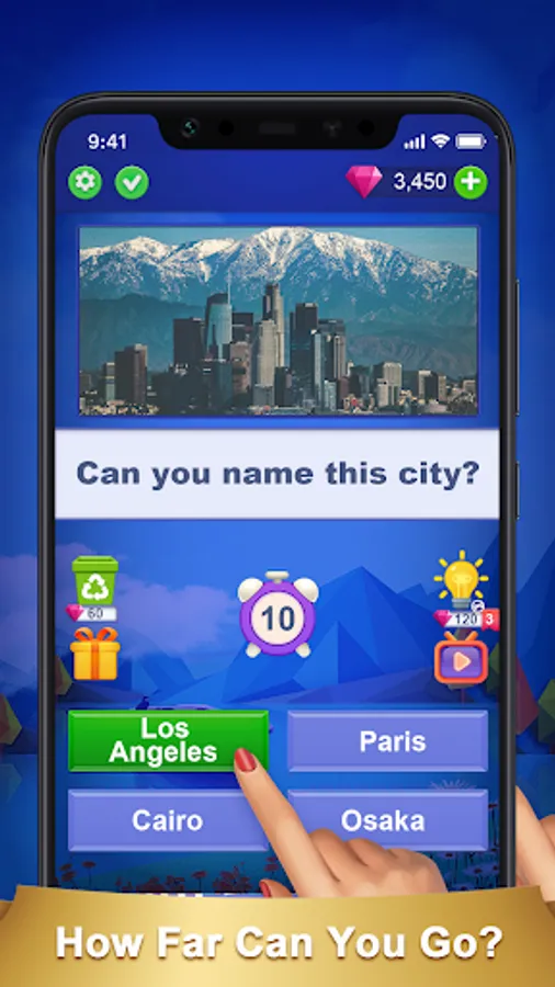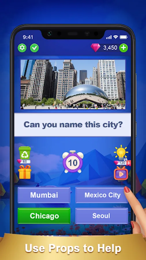 🚌 Use "Light" to remove a wrong answer; Use "Diamonds" to buy 20 seconds more if your time is used up.
