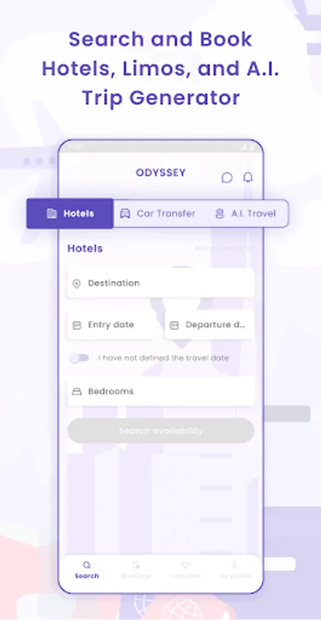 Finding the perfect accommodation has never been easier. Odyssey gives you seamless access to thousands of hotels around the world. Simply enter your destination and dates, and within seconds, you'll have a curated list of options at your fingertips. Filter by price, amenities, and guest reviews to find the ideal hotel that suits your preferences and budget. Say goodbye to endless scrolling and hello to stress-free hotel bookings!