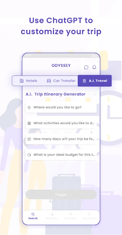 What sets Odyssey apart from the rest is our cutting-edge AI Trip Planner. This advanced technology takes your travel preferences into account and designs a personalized itinerary that caters to your interests and needs. It's like having a travel expert in your pocket! Whether you're a foodie, an adventure seeker, or a culture enthusiast, our AI Trip Planner will create an itinerary that speaks to you. No more hours spent researching – let Odyssey do the work for you.