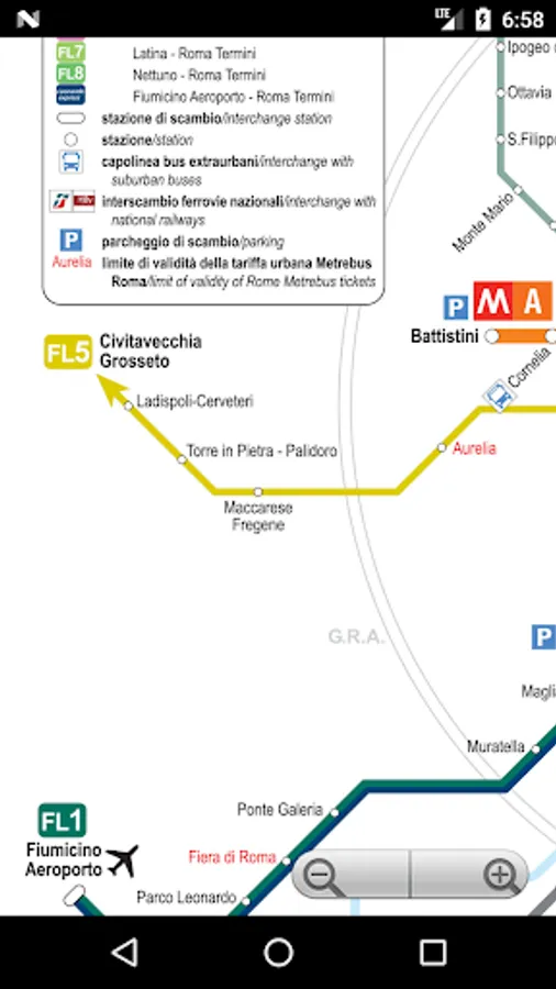 The Rome Metro (Italian: Metropolitana di Roma) is an underground public transportation system that operates in Rome, Italy. The network opened in 1955, making it the oldest in the country. The Metro comprises three lines – Line A (orange), Line B (blue) and Line C (green) – which operate on 60.0 kilometres (37.3 mi) of route, serving 73 stations.