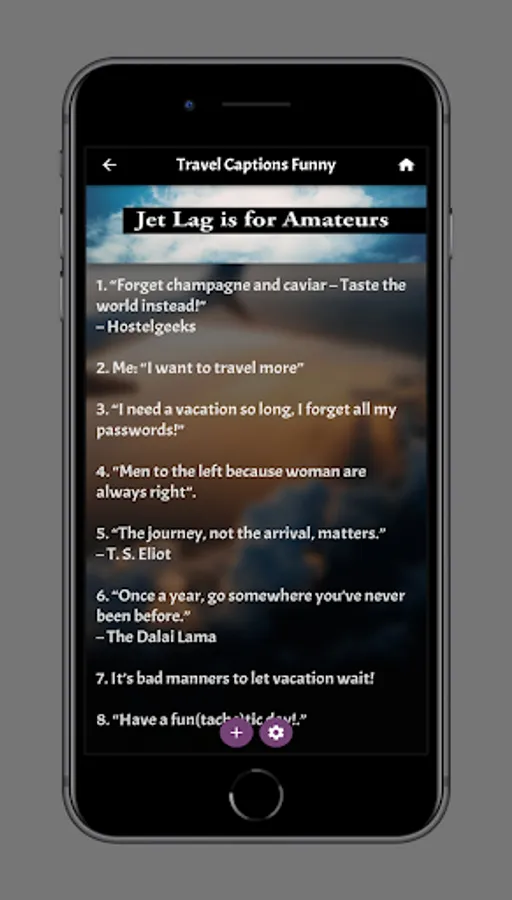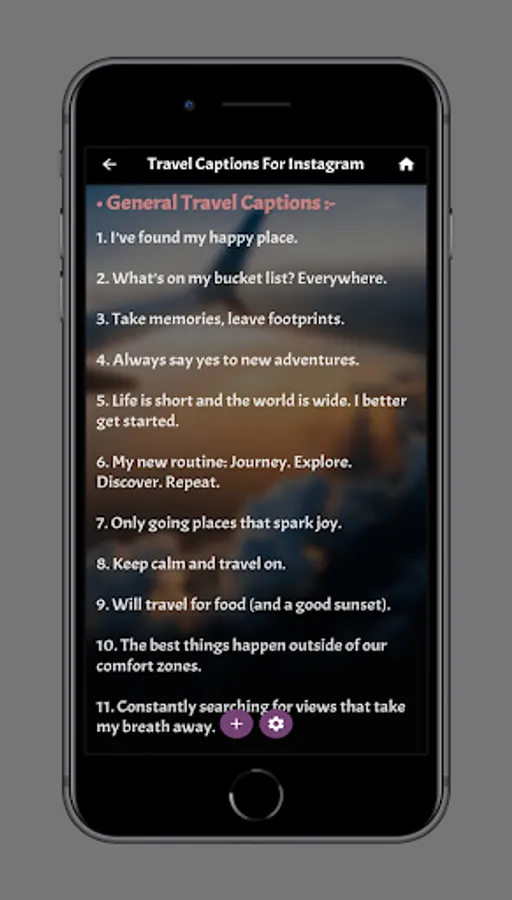 The fourth section in our application is travel captions funny you will find in this section about funny travel Instagram captions, funny travel captions and a lot of amazing quote we are sure you will love it.