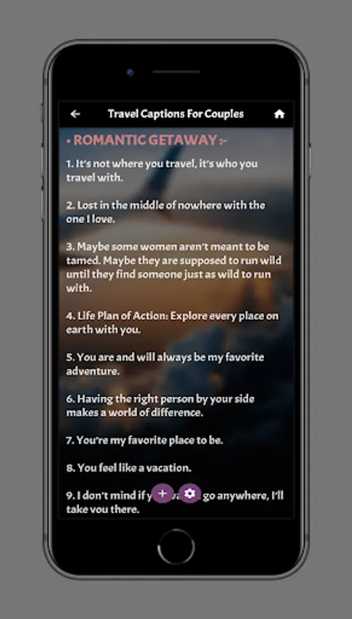 The second section in our application travel captions called travel captions for couples, you will find quotes about funny travel captions for couples, Instagram captions for couples travel, travel captions for couples, cute Instagram captions for couples travel and a lot of more quotes.