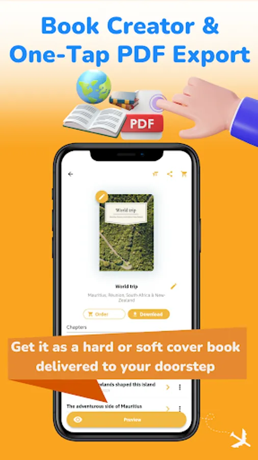 Transform your travel blog into a coffee table book, travel guide, or more with the Travel Diaries PDF export feature.
