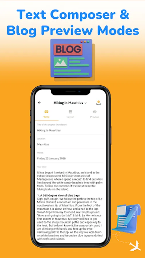 Discover the world and blog about your travels with the π Travel Diaries travel journal writing app.