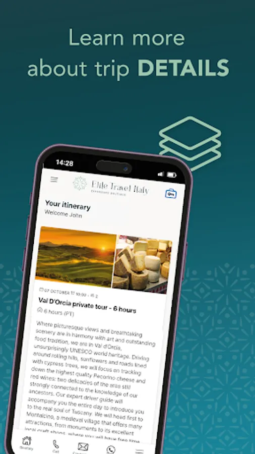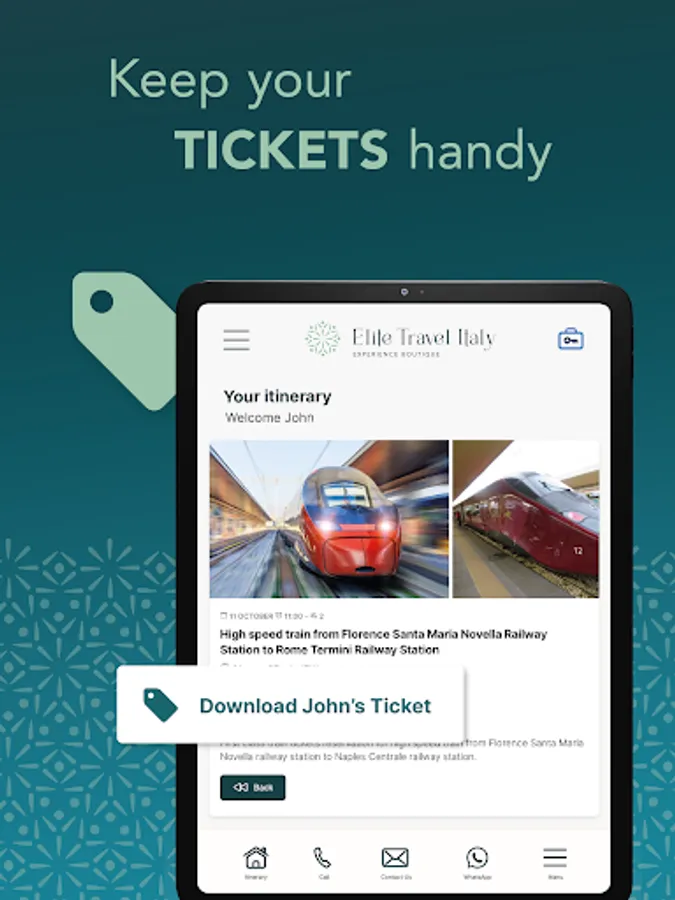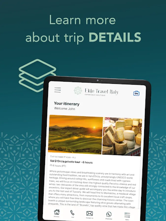 With Elite Travel Italy, embark on a transformative travel experience like no other. Our app provides you the access to your itinerary all at your fingertips.