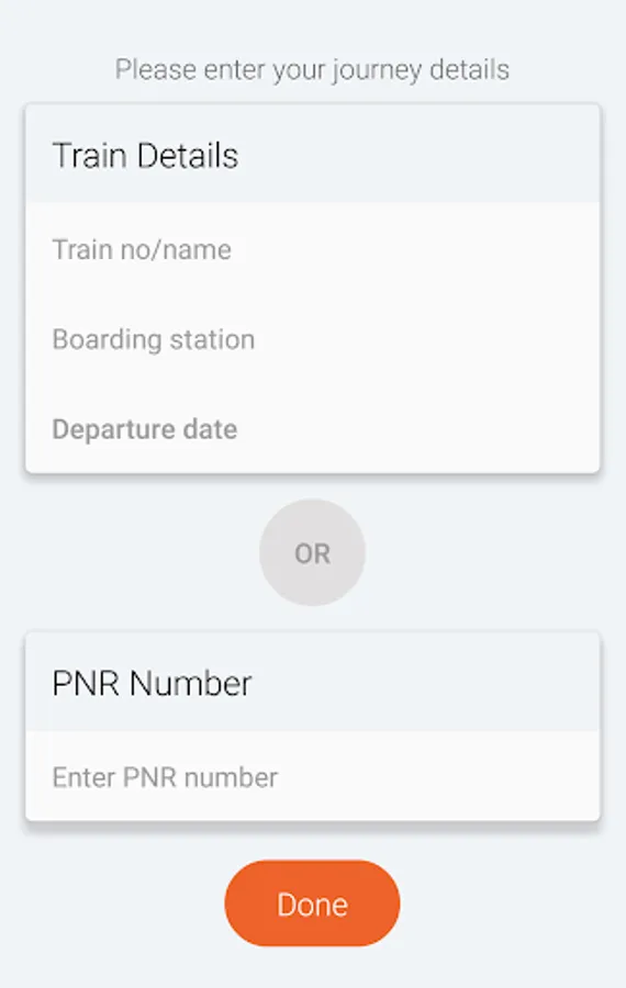 First, you can download the Travelkhana App from Playstore on your Smartphone. On the first page, enter the train number or name and station of departure or you can simply key in the PNR number of your ticket.