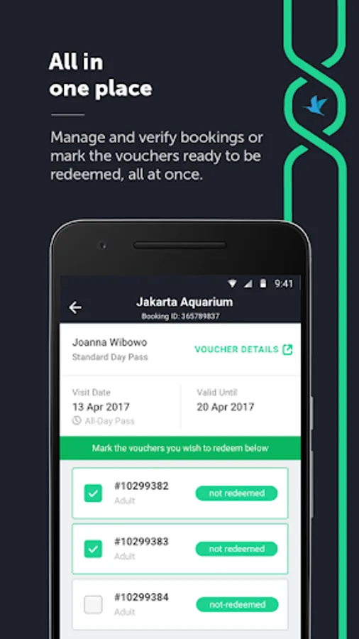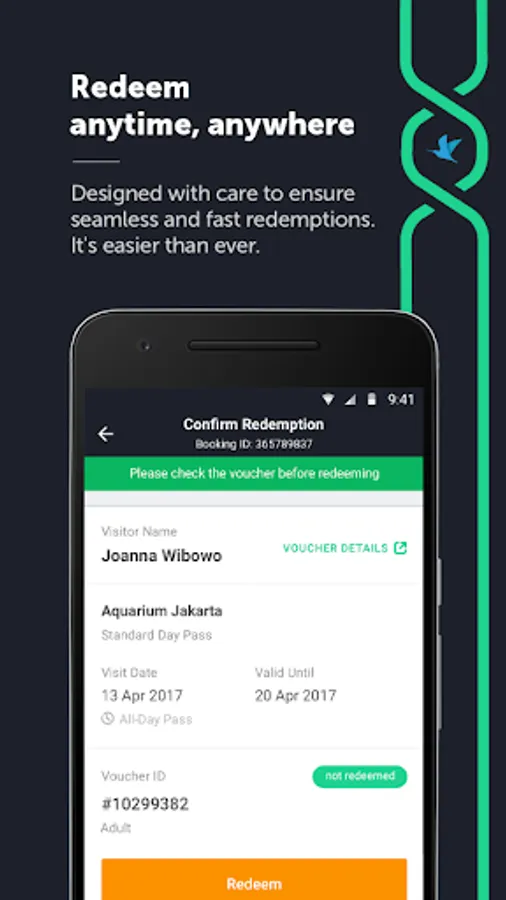 Everything is all in one place, accessible in a few taps. Manage and verify bookings, search by voucher codes, keep track of visitors and redeem multiple vouchers all at once. Plus, the app stores all unredeemed and redeemed vouchers, so you can access them from anywhere at any time.