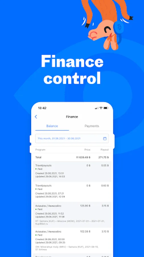 With the Travelpayouts mobile app, you can conveniently track statistics on searches, clicks, and sales. The application provides both general and detailed information on a specific brand for the selected period.
