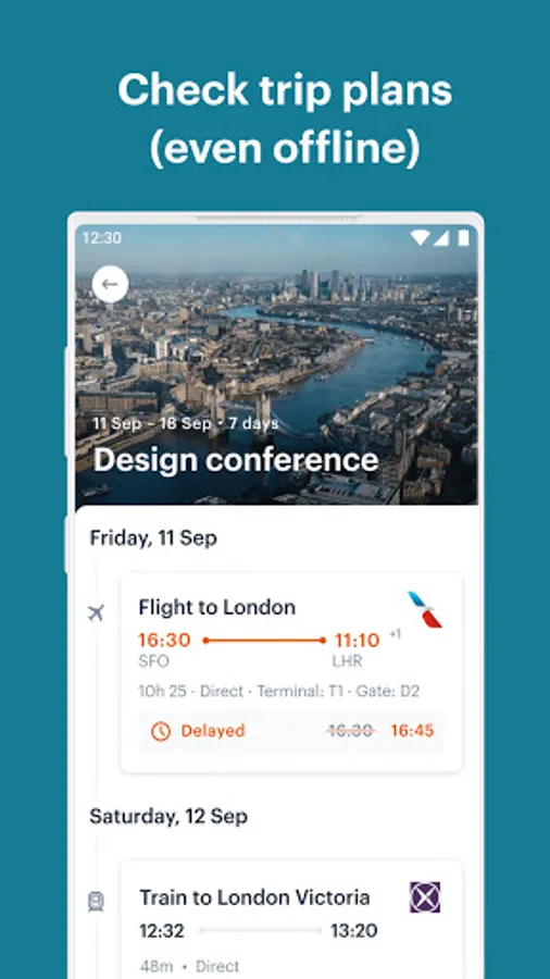 - Your bookings in your pocket: flights, hotels, trains, and rental cars
