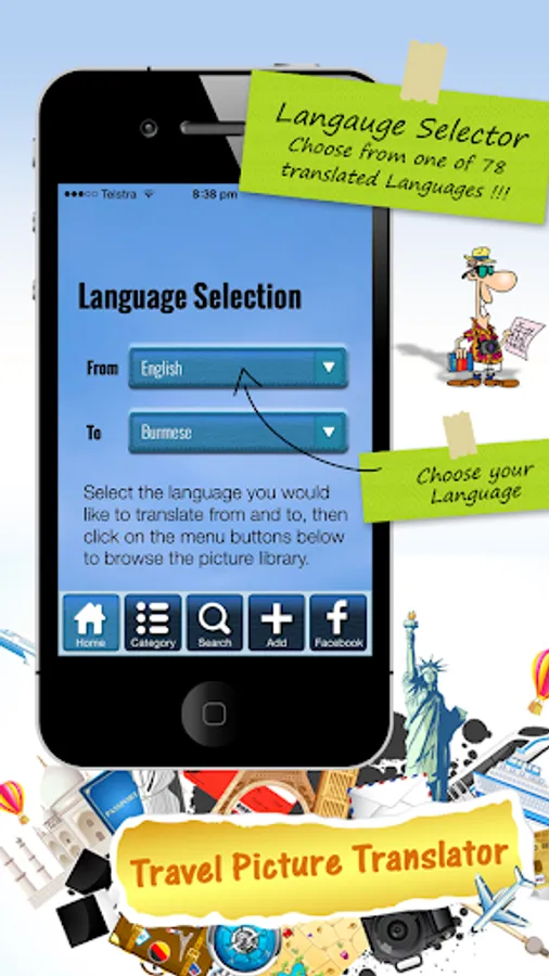 No matter which country you end up in or whatever language is spoken we have you covered. No Internet Data Roaming or Wifi Access is required. Simply select the language to translate to and search from the huge list of pictures. This simple App lets you communicate in 78 languages (list below). A picture says a thousands words so never be speechless again.
