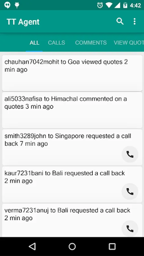 As a TT agent, you can now follow up with Travellers on the go and close deals quickly. You will receive a notification about traveler activities like he is online, he is viewing your quote, he has commented, has edited preferences, made payment, cancelled trip or rejected your quote. You will also get notified if it is time for a reminder, Voucher pending, or a trip is about to start