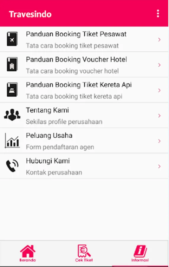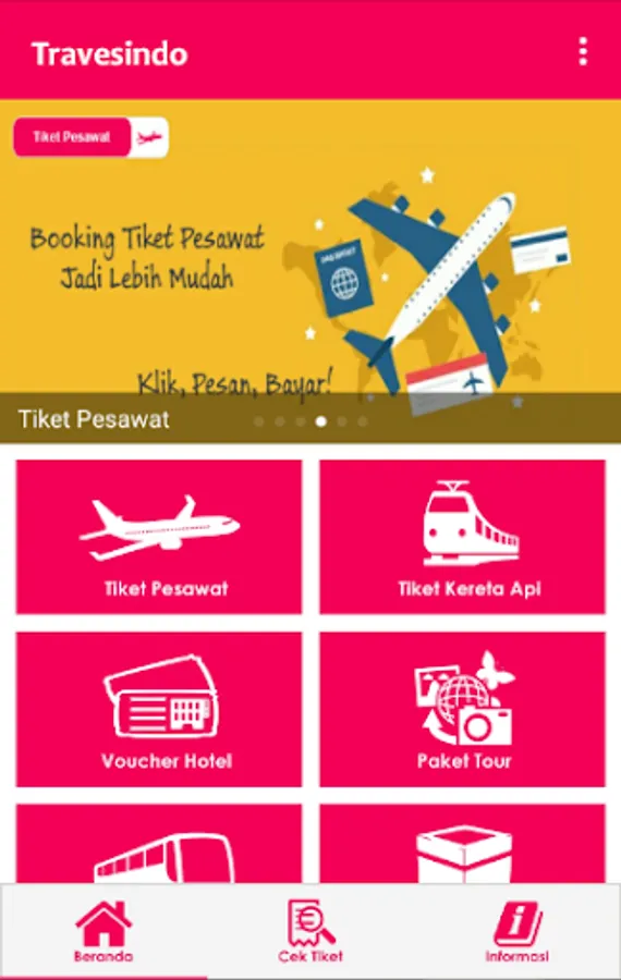Travesindo in design with simple and simple display that allows users to order tickets. Until now we are still growing and trying to find the best solution for those who want to travel / travel throughout Indonesia.