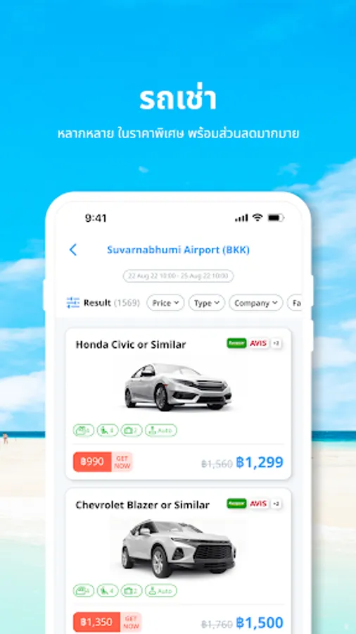4. Book a car rental that covers the whole of Thailand and other countries Through world-class service providers such as EUROPCAR, SIXT, AVIS BUDGET and many others. Easy to book, convenient to pay. Support both pre-booking forms and proceed to payment at the pick-up point or pay immediately through the application