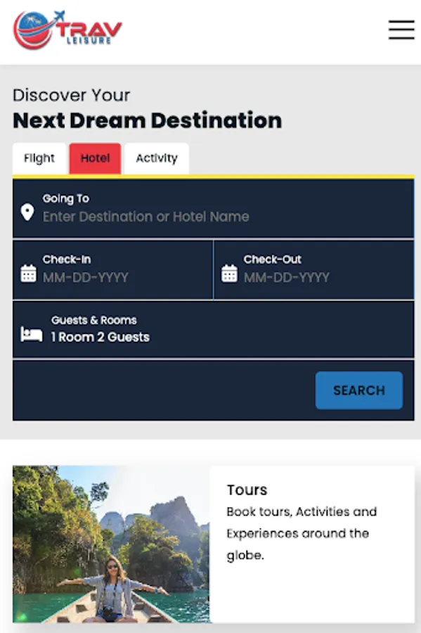 Download TravLeisure now and embark on a journey of a lifetime. Whether you're seeking relaxation on a tropical beach, exploring ancient ruins, or immersing yourself in vibrant cultures, TravLeisure is your ultimate travel companion, ensuring every step of your journey is extraordinary. Get ready to explore the world like never before. Let TravLeisure be your guide!