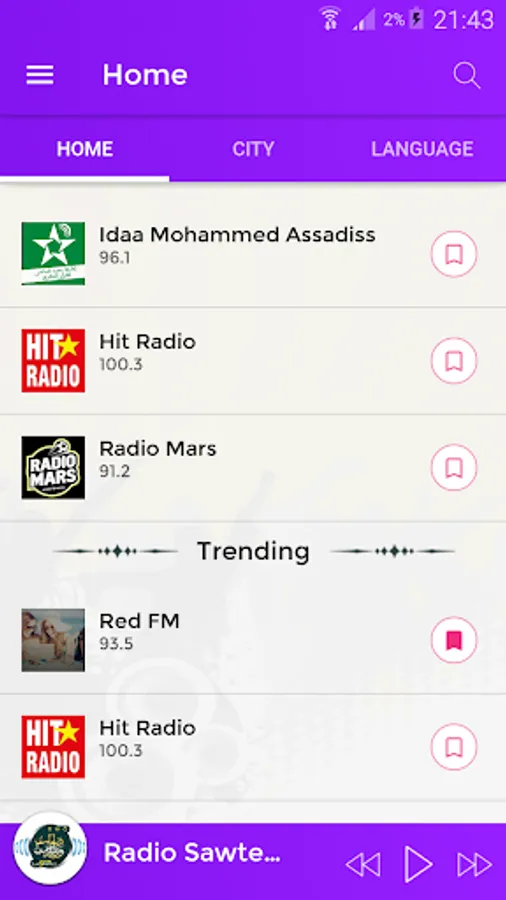 Enjoy your favorite Moroccan radio channels with an easy-to-use app. In a jiffy, browse all available radio channels, set up and listen to your favorite channels without the need for headphones. Super sound and beautiful radio channels of Rabat, Casablanca, Agadir, Marrakech and many other places around our beloved country! Choose from many templates to enhance your listening experience.
