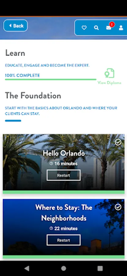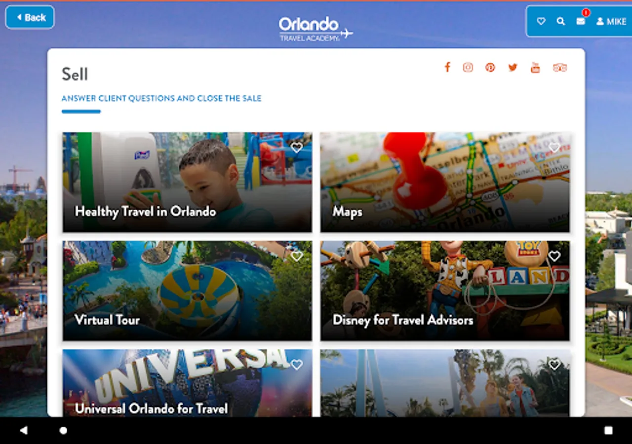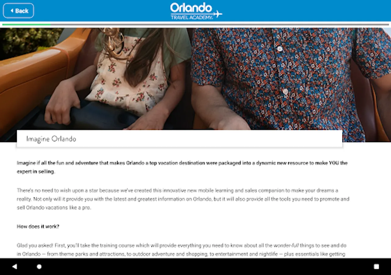 Welcome to the Orlando Travel Academy Training & Sales Companion. This app has been uniquely designed to be a comprehensive mobile resource for travel advisors selling all things Orlando. By providing vital product intel, engaging promotional opportunities and practical booking tools to close the sale, advisors now have anytime/anywhere access to discover and sell Orlando.