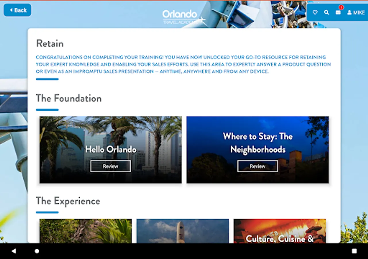 Being an Orlando Travel Academy PRO on the go is easy. Content is fresh and updated regularly, and progress through training and other favorited areas of the companion are seamlessly integrated between web and app platforms.