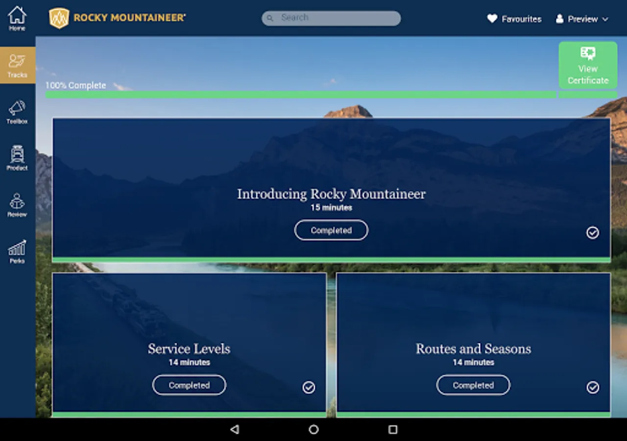 Welcome to TRACKS brought to you by Rocky Mountaineer! Whether you’re new to Rocky Mountaineer or a long-term partner, this training program will help you create life-changing vacations for your clients and provide you with the insights you need to grow your business. This program brings you the best and most accurate information on Rocky Mountaineer. When you graduate as a Rocky Mountaineer Specialist, you will be full of sales confidence, and armed with all the resources you need to support your sales efforts LONG after you finish the course. The TRACKS platform makes selling easier by providing quick and easy access to sales and marketing resources via the Toolbox section, so you can ‘be the expert’ anytime you need to. You’ll also have access to a wide range of resources via Rocky Mountaineer’s own Trade Portal.