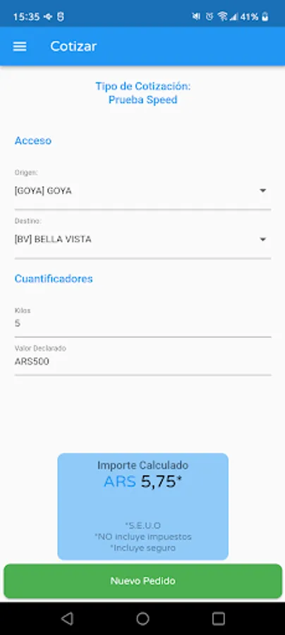Enter the access data and quantifiers to obtain an approximate value of your shipment.