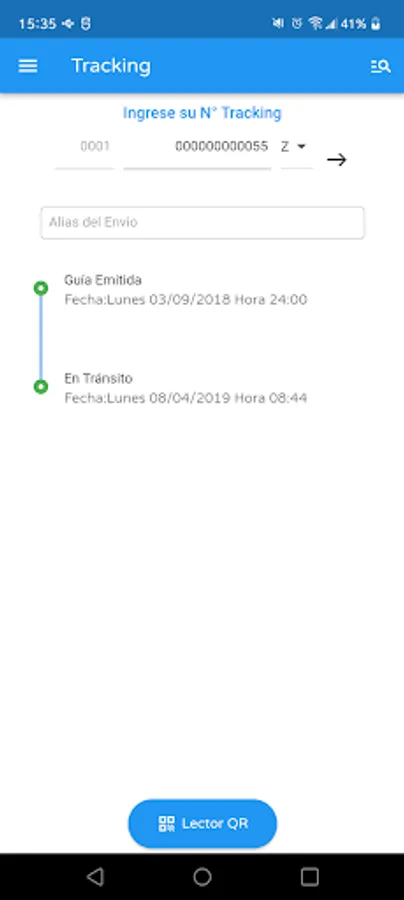 Remember that you can personalize each search in the "ALIAS DEL ENVIO" sector with a name to help you identify it.
