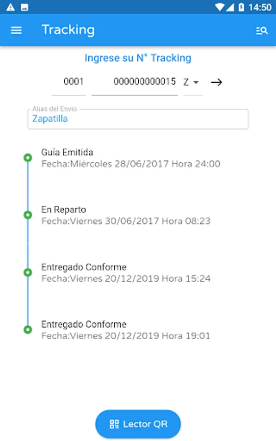The My Shipments option groups all your searches so you can track them on a single screen. Each shipment will be updated automatically at all times.