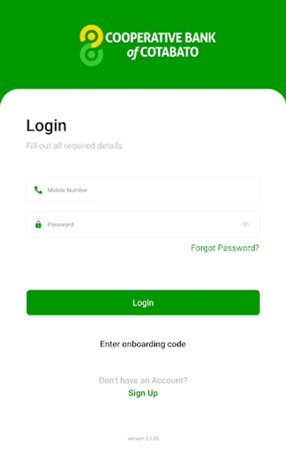 Experience the complete convenience offered by the Cooperative Bank of Cotabato! Our innovative digital banking platform empowers users to conduct a wide range of banking transactions with ease. Seamlessly pay bills, purchase mobile loads, shop online, file loan applications, and enjoy a host of other services, all from the comfort of your own device. With Cooperative Bank of Cotabato, your banking needs are just a few taps away.