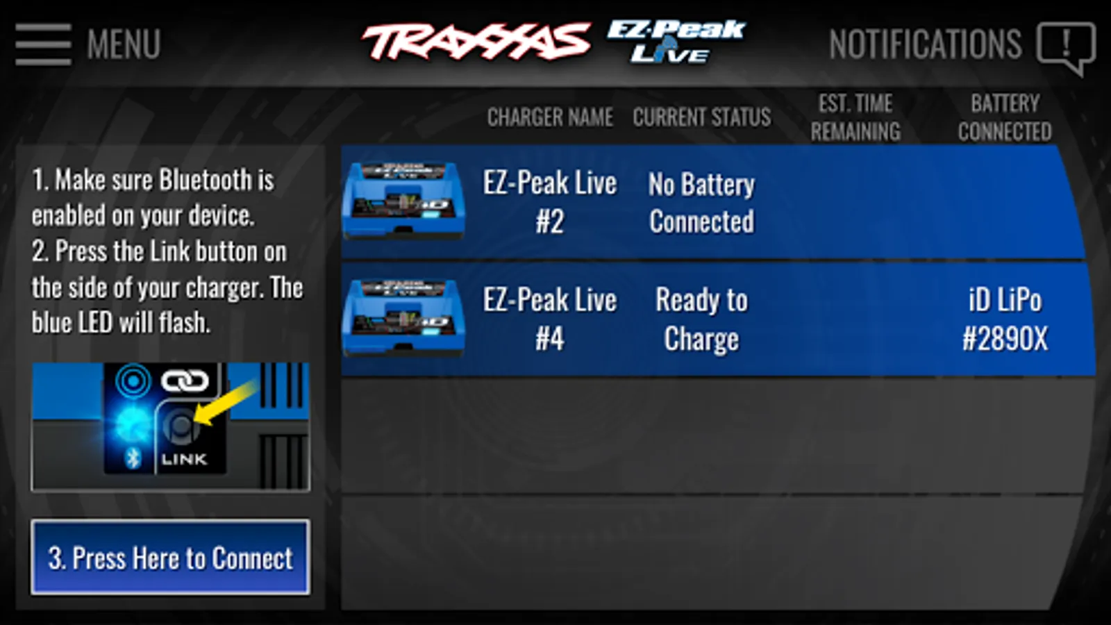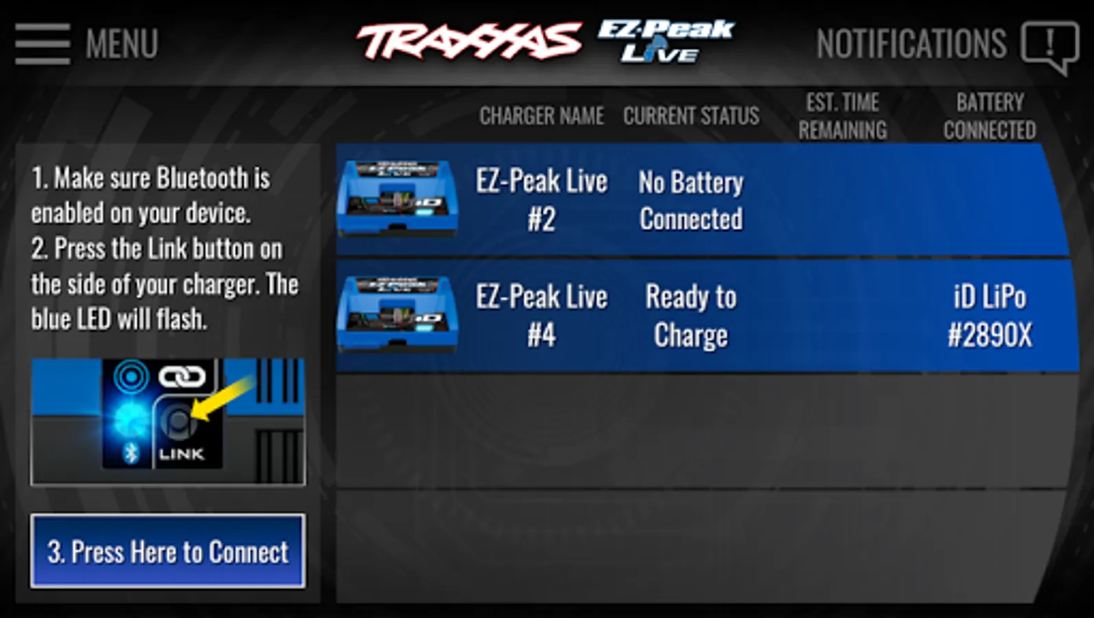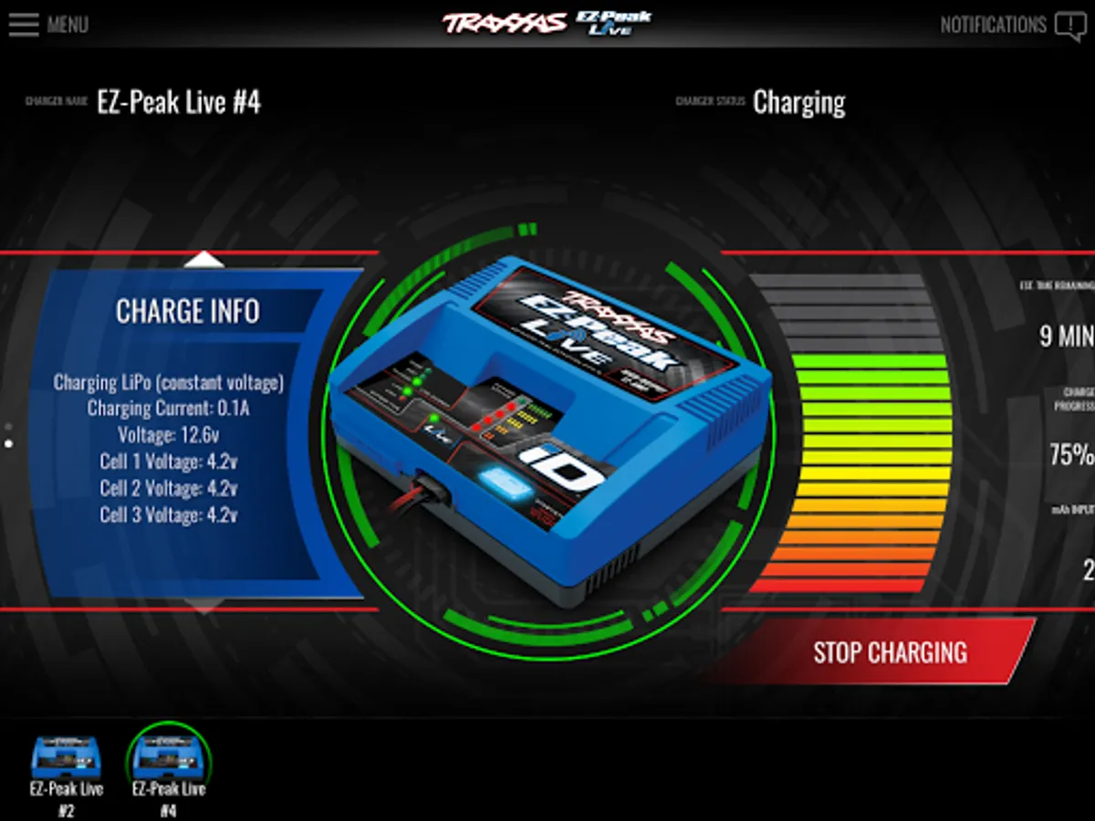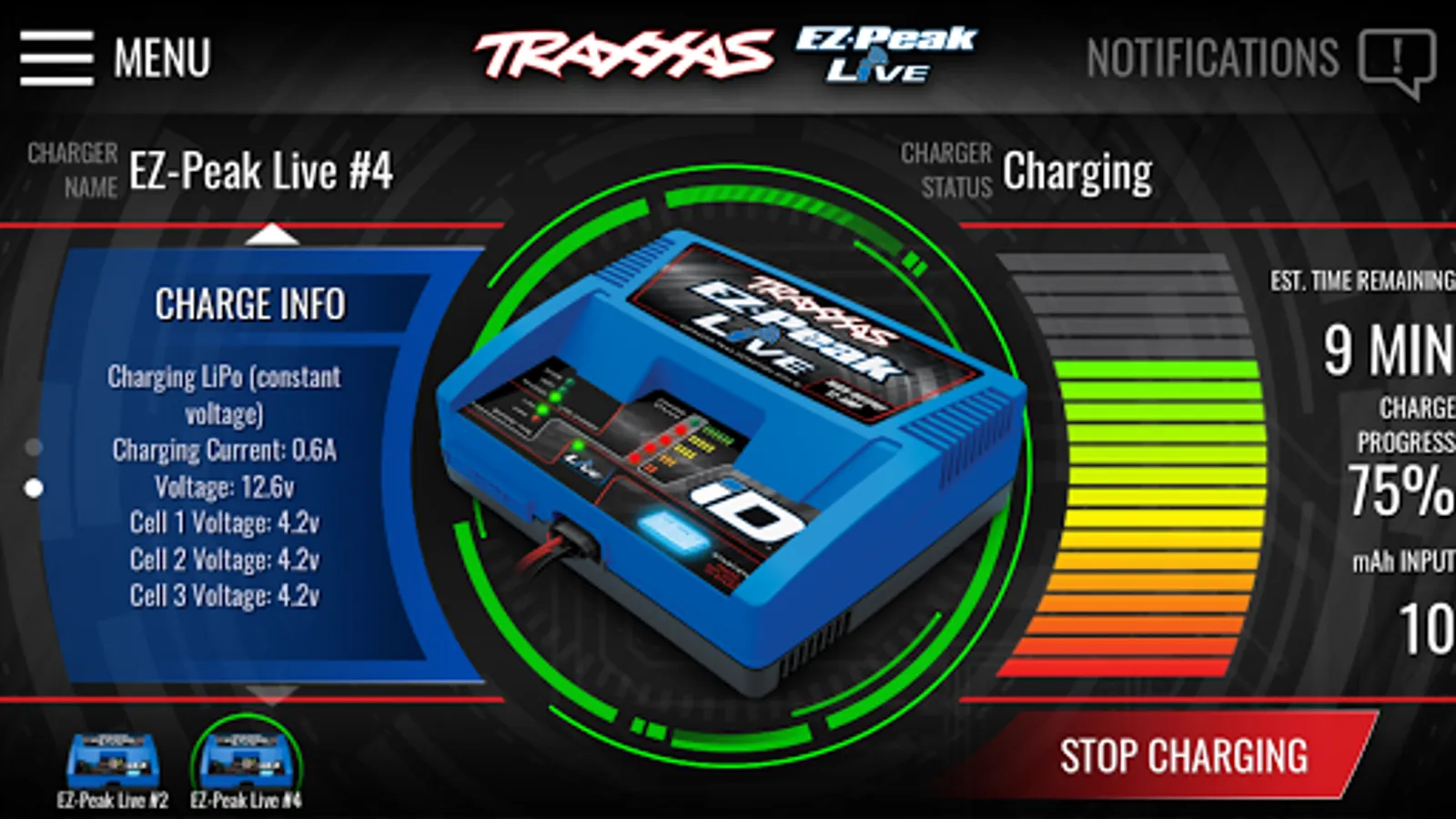 The Traxxas® EZ-Peak Live™ App connects wirelessly via Bluetooth® to the Traxxas EZ-Peak Live multi-chemistry charger (#2971). The app transforms your iOS device into a powerful tool to access the charger’s advanced features with an easy-to-use graphical interface. Connect up to four chargers to your iOS device to monitor charge status, receive remote alerts, and access the charger’s manual settings.