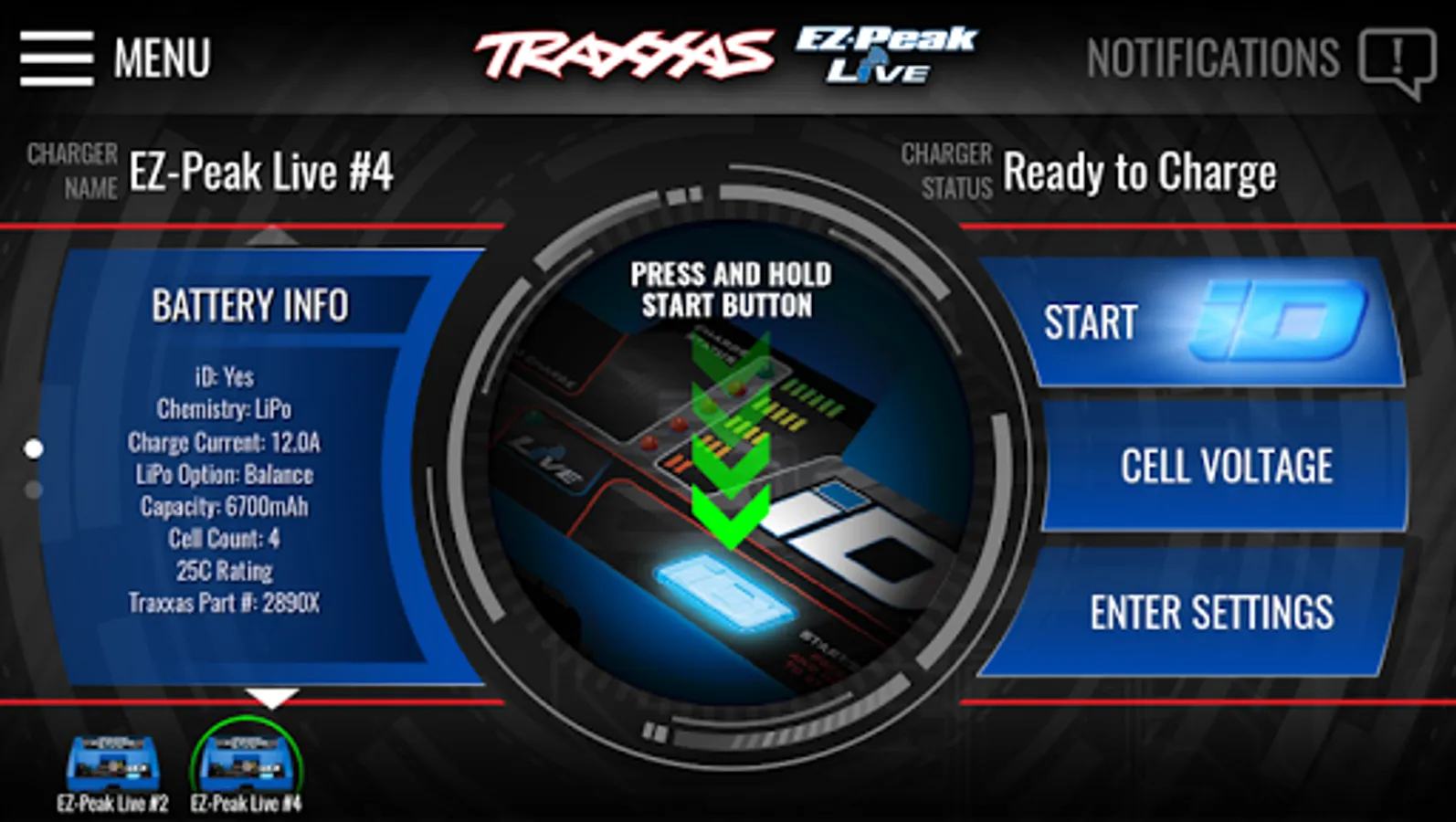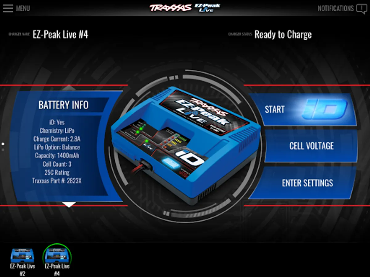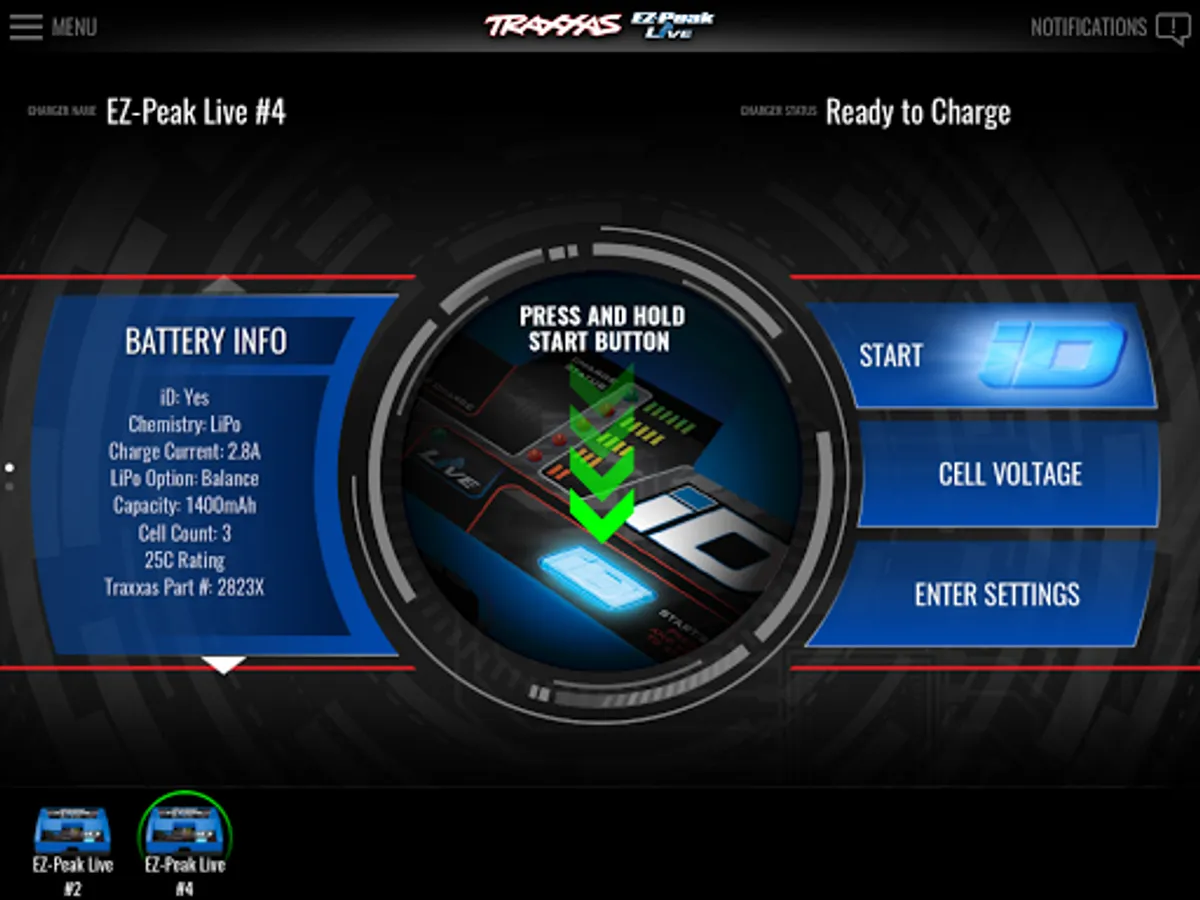 The Traxxas iD system is the easiest and most efficient way to charge your iD-equipped batteries. When you connect an iD-equipped battery to your EZ-Peak Live charger, the battery’s information will automatically be displayed on the app screen. The app allows you to instantly verify your battery’s status and individual LiPo cell voltages with clear and precise readouts. Use the charger’s automatic settings or configure your own with the easy-to-use sliders and buttons on the high-definition graphical interface.