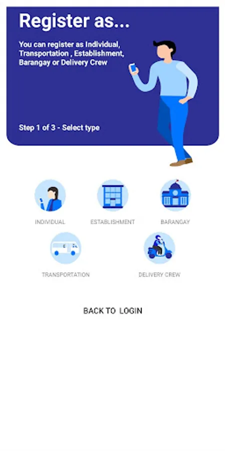 - Individuals, establishments, schools, logistics, transportations, barangay/ communities can register via the app.