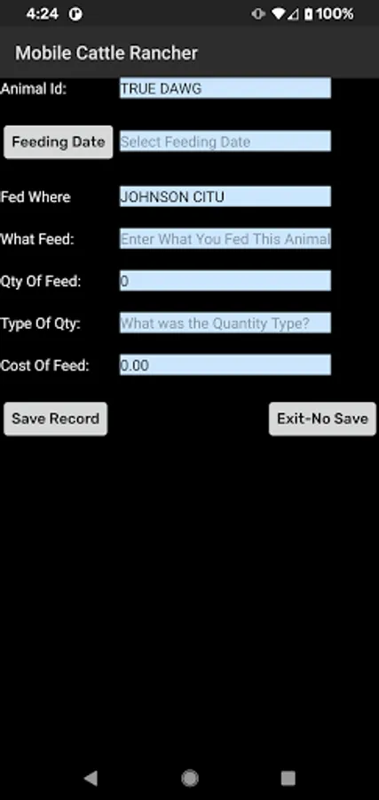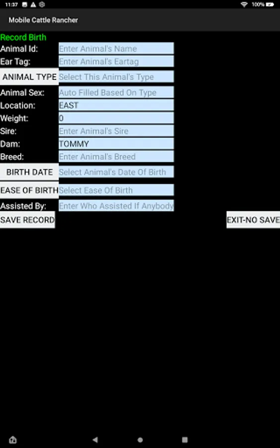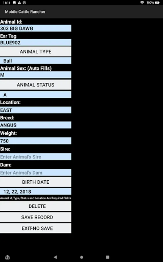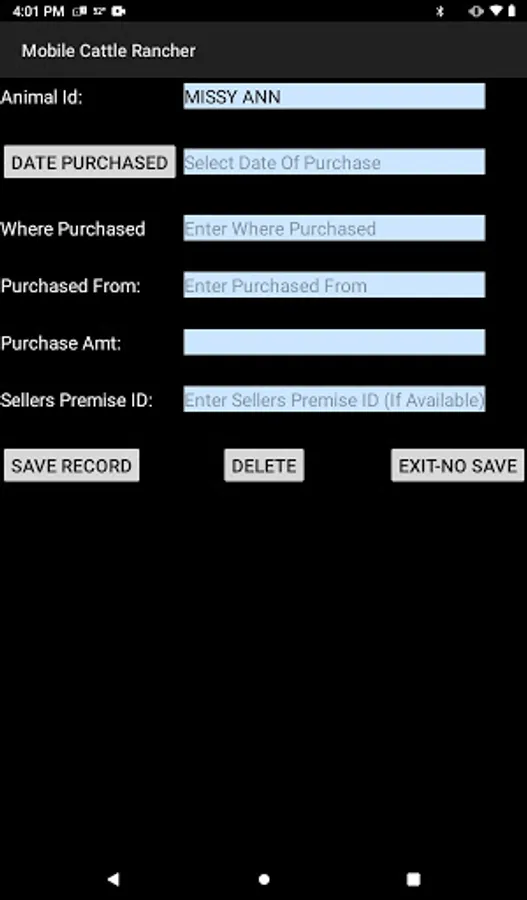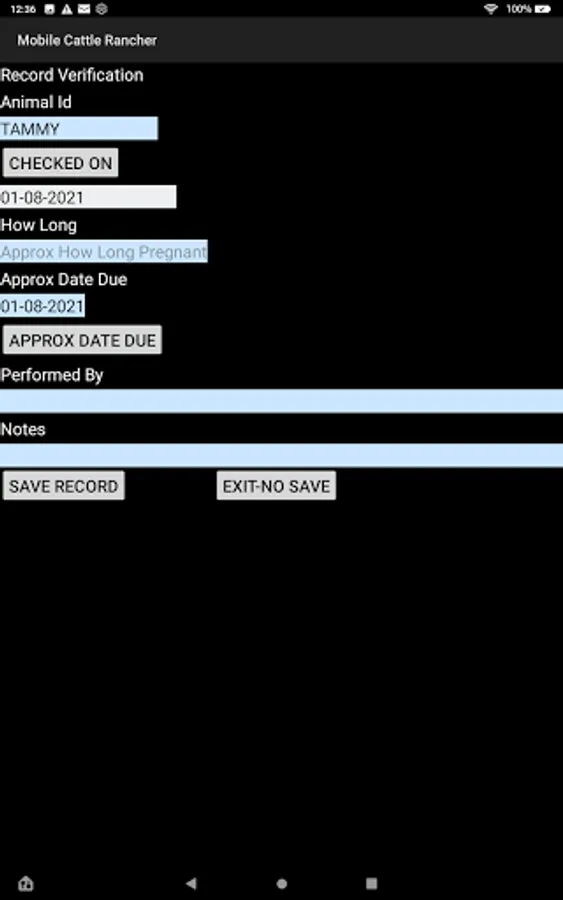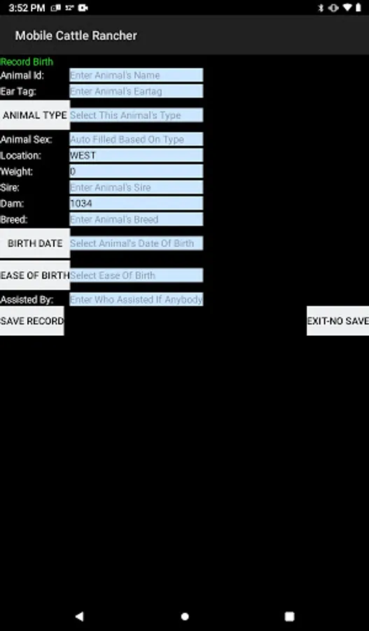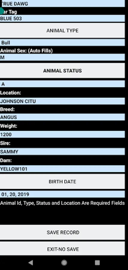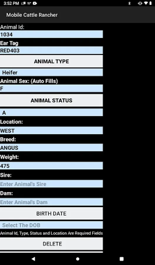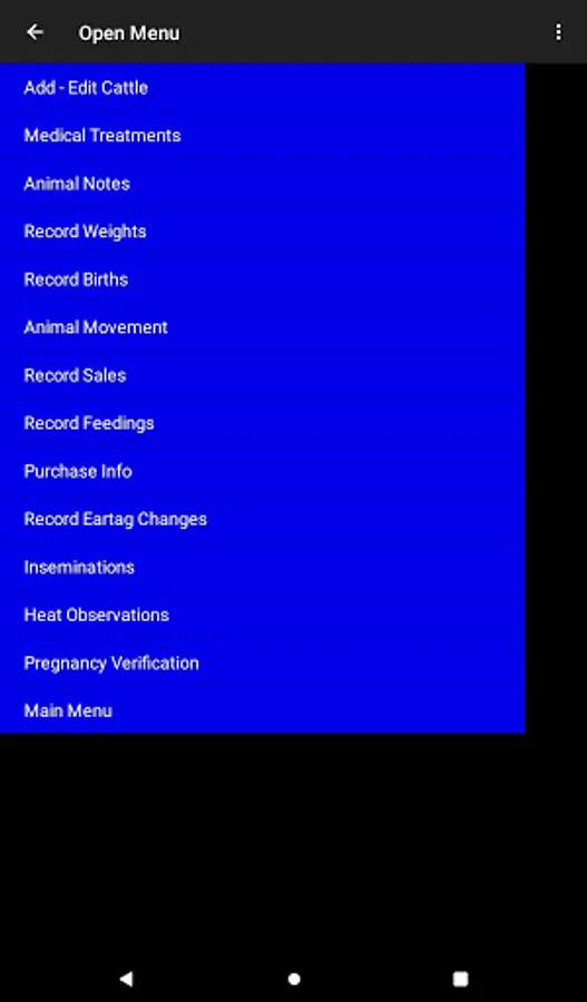Features include: Animal Information Records – Medical Records - Animal Notes - Growth History – Births – Location Changes – Sales – Feedings - Purchase Information - Ear-tag Changes - Inseminations - Record Heat Observations - Pregnancy Verification - View Cow-Calf History - View Upcoming Births - Create CSV files for data export - Backup and Restore of database and many more features.