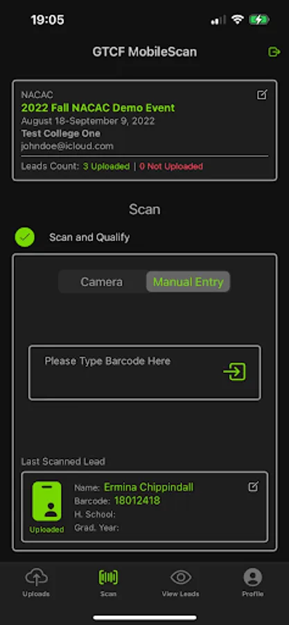 The GTCF mobile app offers you the convenience of having a gotocollegefairs.com (GTCF) scanner on your phone! With increased functionality and unique features, this mobile scanning app is the perfect companion for a college representative during a busy recruiting season.