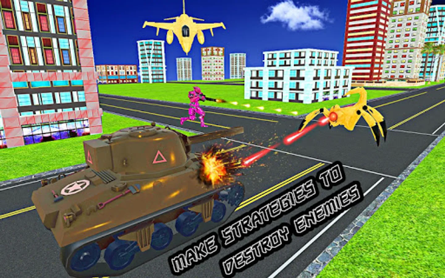 There are new army tank robot transforming games modes and US army Jet robot games storylines in this jet plane robot transformation games. Robot car games offer you to choose your favorite transforming robot to make the gameplay of tank robot war games more thrilling and exciting. Transform your tank robot into a jet or plane and unleash the wrath on the evil forces of robot fighting games. As a mech robot warrior, you can destroy your enemy with heavy weapons in tank robot transforming battle games and air jet robot shooting games. Get ready to land into the robot war situation of tank transform robot battle games. Shoot your evil opponents with heavy machine guns and rocket launchers of your transforming tank robot and air Jet bot in US army robot transforming games. In this jet robot transformation games you can shoot all dangerous enemies who destroying your city with transform tank and shooting cars.